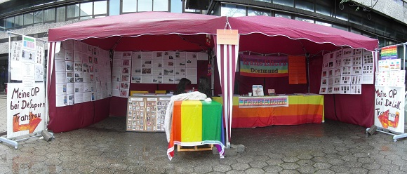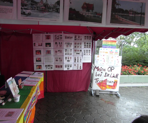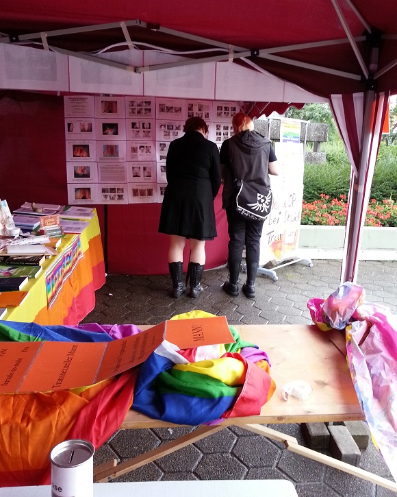 Und noch ein paar schöne Fotos von unserem Stand, mal wieder der interessanteste Stand auf dem CSD, erst recht in der Rubrik "trans". Ist bei allem, was wir letztes Jahr an Ausbau gemacht haben und dieses Jahr an Infos und liebevoller Detailarbeit, der beste Stand, den Trans-Eltern jemals hatte...